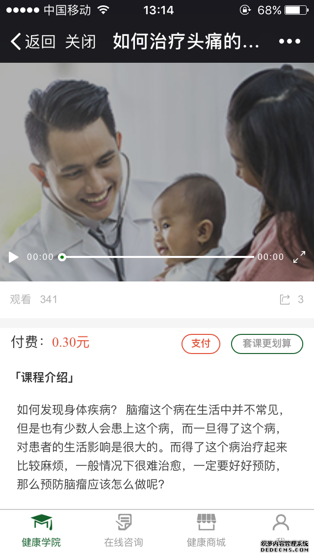 在线课程下单支付后可观看课程,适用于职业教育、技能培训、网络课堂等在线课程领域的解决方案